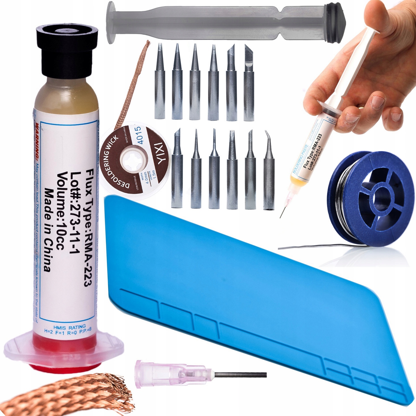 shumee Topilo za spajkanje Rosfix RMA-223 z batom in iglo + kositer za spajkanje 0,8 mm 10g + 12 spajkalnih konic 900M + pletenica 3,5x1,5m + Mat 30x20