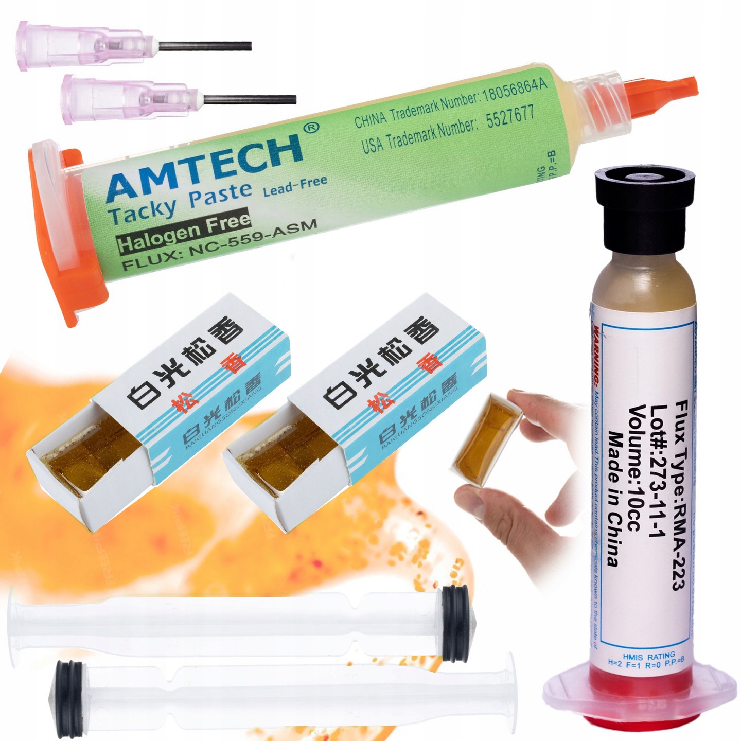 Topilo za spajkanje Rosfix RMA-223 z batom in iglo + 2× rumeno topilo za spajkanje v 60 ml škatli ZJ-18 + 10cc talilo NC-559-ASM