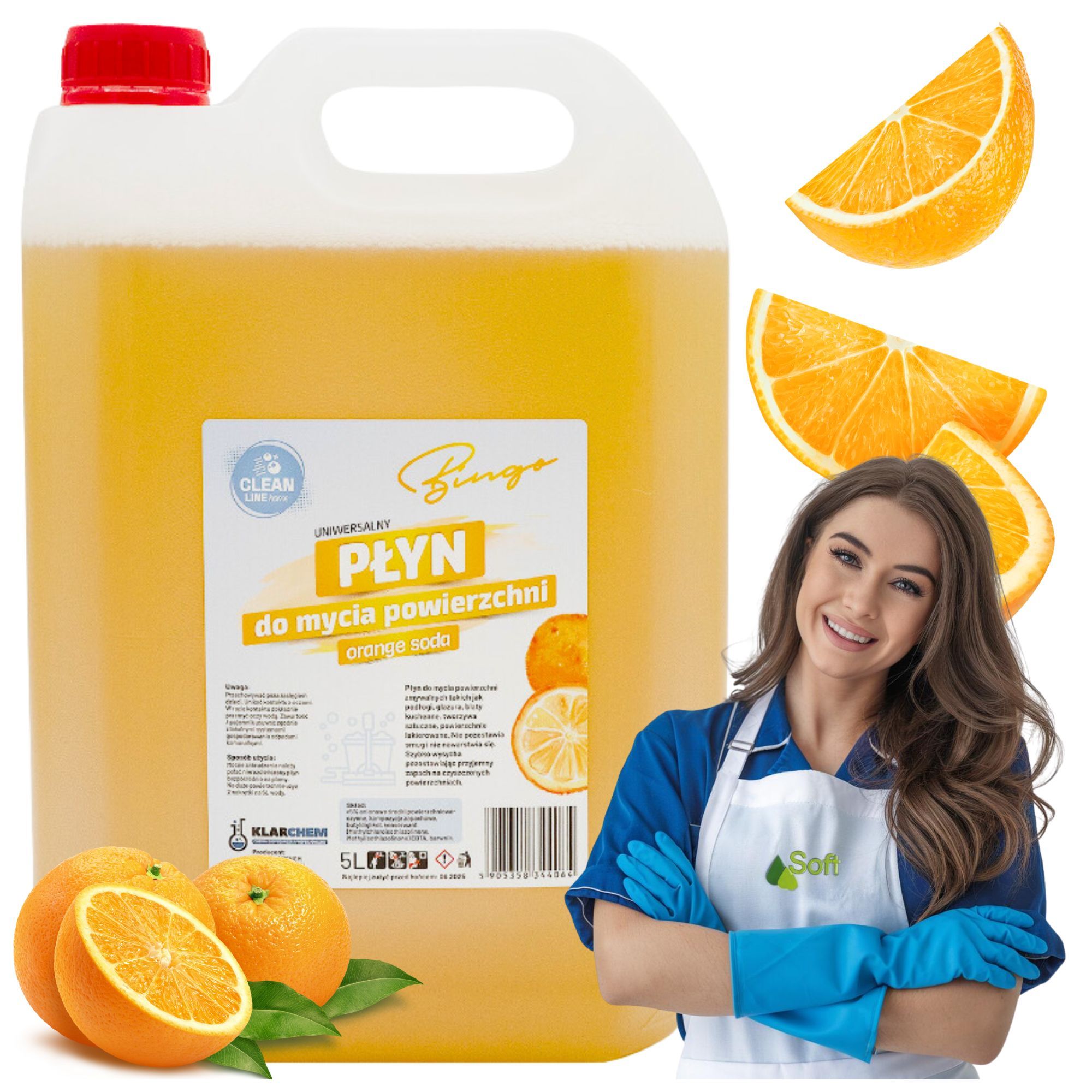 Predstavljamo Bingo – univerzalno čistilo za površine, ki združuje učinkovitost s svežim vonjem pomarančne sode. Odkrijte nove standarde čistoče s tem večnamenskim izdelkom! Idealno za čiščenje tal, ploščic, kuhinjskih pultov, plastike in lakiranih površin, ne ponuja le globinskega čiščenja, temveč zagotavlja tudi čistočo brez lis.