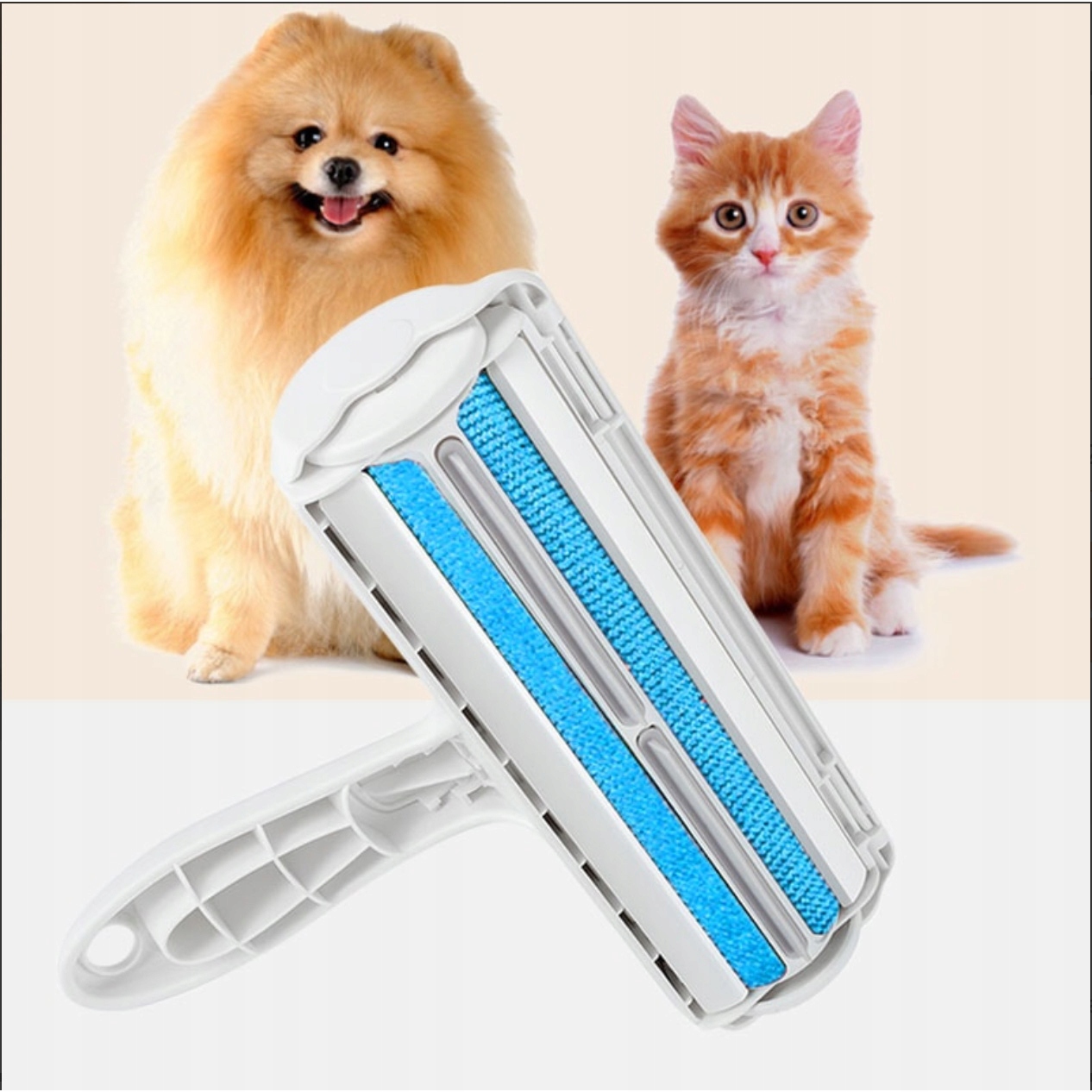 Takojšen učinek- Zahvaljujoč posebnim najlonskim ščetinam in gumijastim strgalom, valjček temeljito pobere dlako, dlako in kosme, vključno z globoko vraščenimi dlakami s sedežnih garnitur, naslanjačev, preprog, postelj in oblačil.