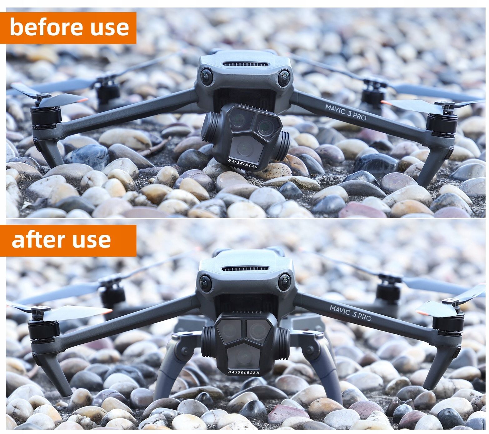 Pri pristanku na neravnih in raznolikih površinah ščiti občutljive komponente , kot so gimbal/senzorji, pred kontaminacijo.