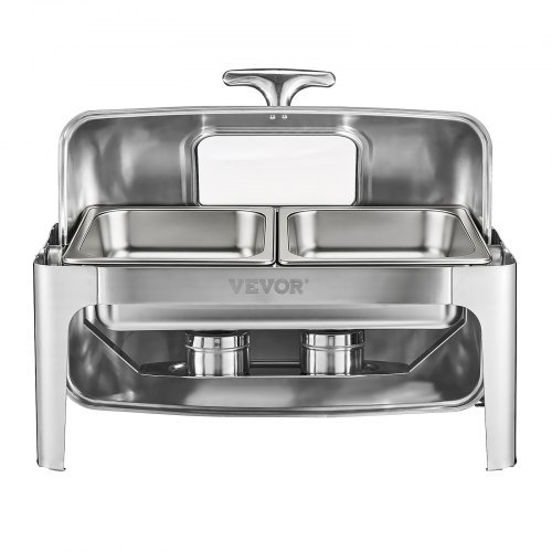 VEVOR Set za postrežbo hrane Chafing Dish Buffet pravokoten z zvitim pokrovom 9 qt srebrn