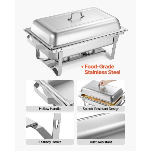 Set iz nerjavečega jekla za ogrevanje hrane zasnovan za učinkovito ogrevanje in elegantno predstavitev bifeja idealen za catering dogodke bankete zabave in poroke. Celoten set je primeren za postrežbo toplih in hladnih jedi z lastnostmi ki zagotavljajo priročnost in profesionalno predstavitev. Njegova trpežna konstrukcija in prostorna zmogljivost ga naredijo zanesljivo izbiro za restavracije hotele in samopostrežne obroke.