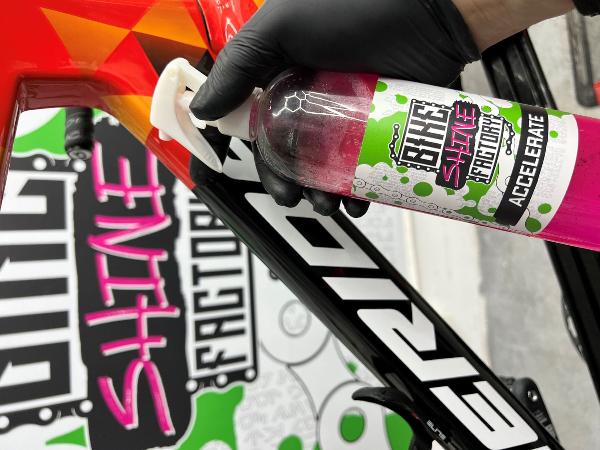 BikeShineFactory Accelerate je Quick Detailer, ki bo osvežil vse barvne in druge površine, odstranil sledi prstnih odtisov, ostanke znoja, tekočin …