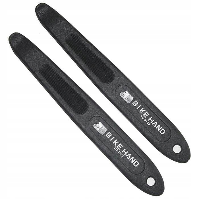 BIKE HAND – set dolgih ročic za kolesarske pnevmatike, izdel. iz PVC-ja. Rešitev, ki omogoča priročno demontažo/montažo pnevmatike brez nevarnosti poškodbe platišča. Zahvaljujoč dolgi ročici lahko z njimi odstranite tudi najtežje pnevmatike.