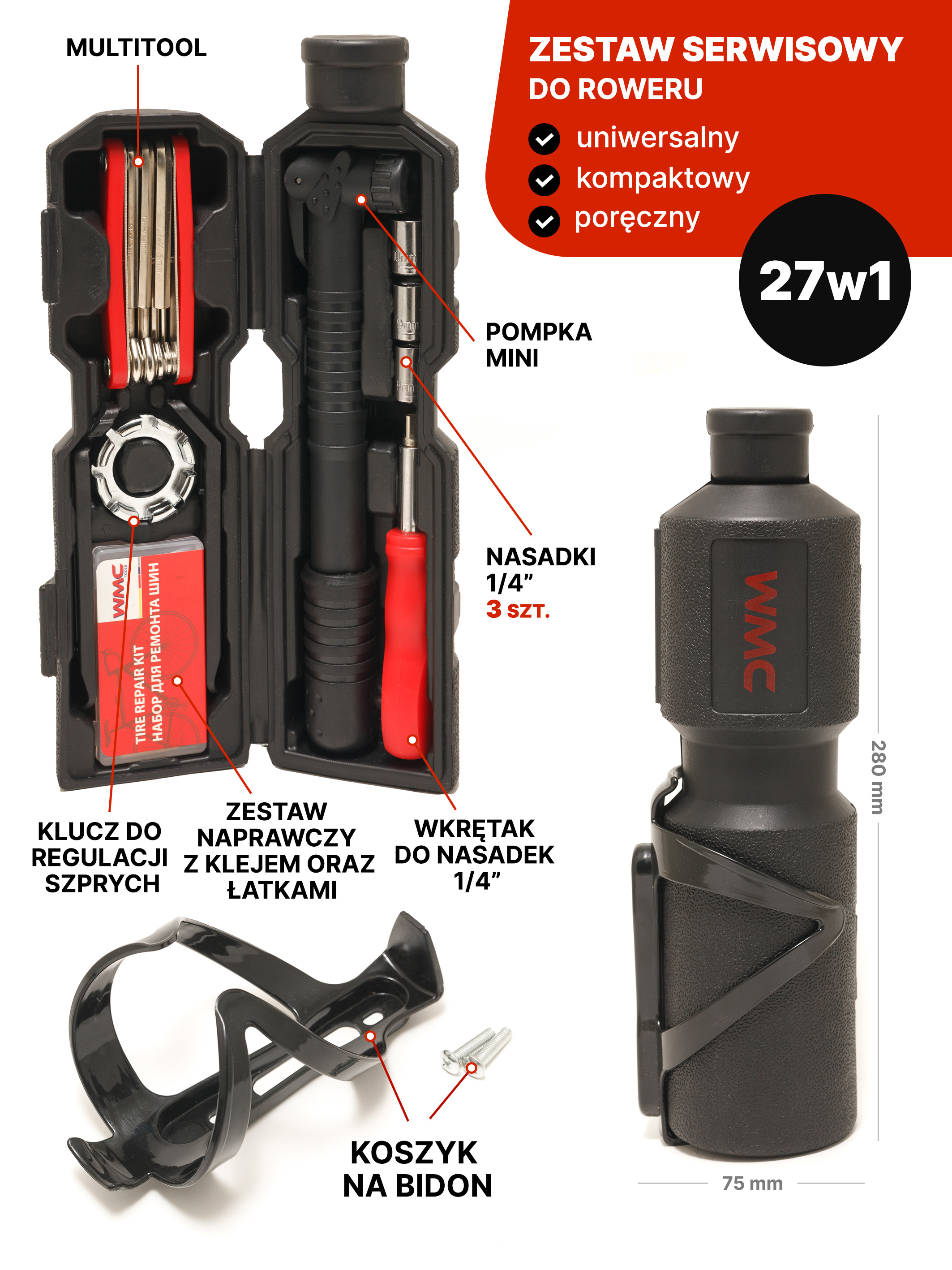 GARNITURA ZA SERVIS KOLES 27v1 ČRNA STEKLENIČKA WMC