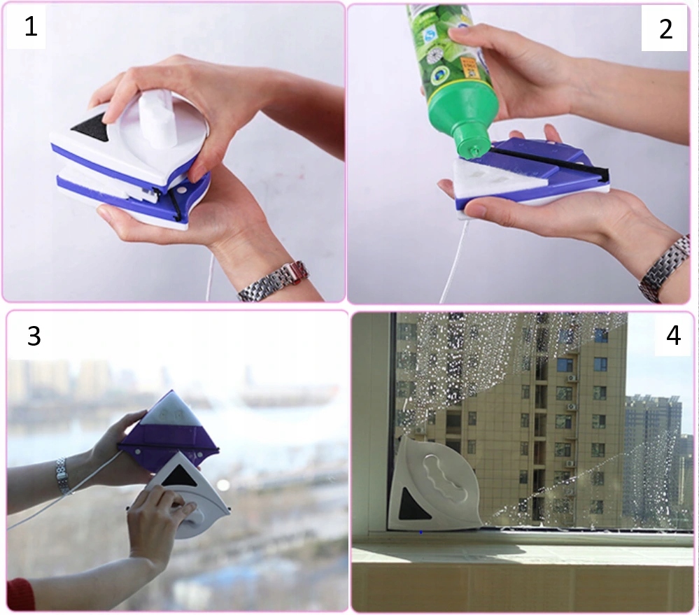 Dvostranska zasnova omogoča čiščenje okna, ne da bi morali stati ob odprtem oknu. Zagotavlja tudi varno vrvico, ki preprečuje, da bi magnet padel z okna. Izdelan je iz ABS materiala, silikona in vrhunskih magnetov za zagotavljanje močne magnetne sile. Dodatno:
