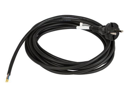 Priključni kabel z gumijasto prevleko, ki se konča s tovarniško vgrajenim vtičem, ki ga ni mogoče odstraniti. Na drugi strani so vodniki kabla zaključeni s tuljavami za enostaven priklop na napravo. zaradi visoke odpornosti gumijaste prevleke proti obrabi, vlagi in težkim delovnim pogojem je kabel idealen za vse fiksne in prenosne naprave, ki se uporabljajo doma, v delavnici ali na gradbišču.