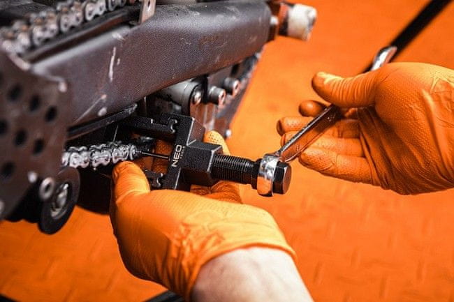 NEO komplet orodja za kovanje in odkovanje verig 10–505 je komplet orodja za motorna kolesa, namenjen kovanju in odkovanju verig HEAVY DUTY. Posebej je prilagojen za verige: 520, 525, 530, 532 in je priporočljiv za strokovnjake in ljubitelje „naredi sam“.
