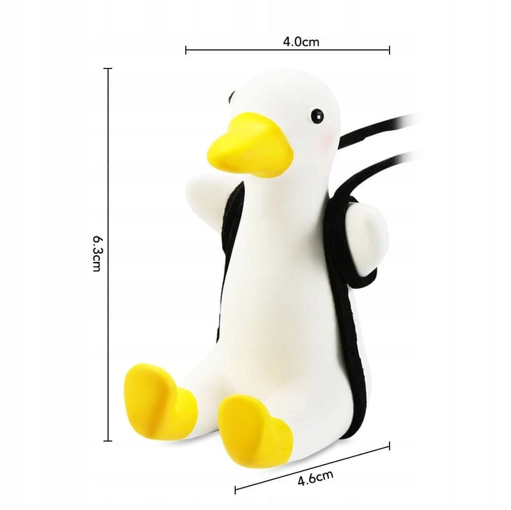 Okrasna obeska v obliki prikupne račke je čudovit dekorativni dodatek, ki vnese toplino in čar v vsak prostor. Popolna za avto, dom ali pisarno, kjerkoli ustvari edinstven in prijeten značaj.