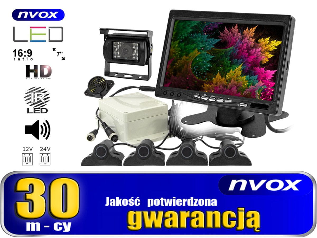 • podpora za do 2 kameri- pomožne linije za parkiranje- parkirni senzorji (območje delovanja do 3 m)- napajanje 12/24 V- temperatura delovanja: –30 do 80 stopinj- Monitor:- široki format HD digitalnega LCD 16:9 Active Matrix System- 7-palčna HD LCD matrika proizvajalca SHARP- svetlost 50