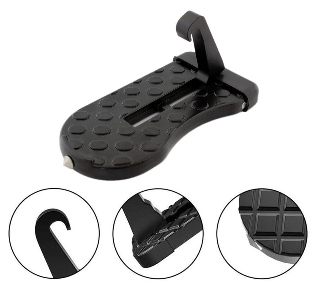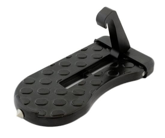 Univerzalna aluminijasta platforma za vozila. Odlična kot dodatna stopnica za lažje nameščanje in natovarjanje zgornjega prtljažnika ali vstop na streho vozila. Enostavna in priročna namestitev na element vratne ključavnice na karoseriji vozila. Ročaj je zaščiten s posebno peno, ki preprečuje praske na karoseriji. Ojačana konstrukcija zagotavlja nosilnost do 120 kg. Posebna tekstura na površini zagotavlja nedrsečnost in preprečuje nenamerne padce. Na sprednji strani ploščadi je vgrajen razbijalec stekla, ki je uporaben v nujnih primerih.
