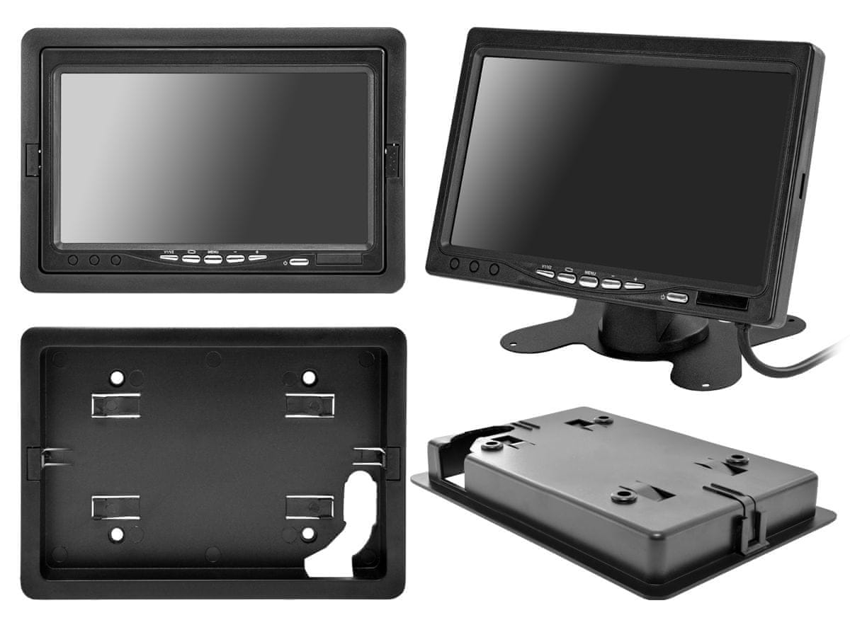priloženo z: – monitorjem, – 1 kamero, – 4 parkirnimi senzorji, – daljinskim upravljalnikom, – napajalnim kablom, – podaljškom RCA (10 m), – stojalom, – garancijo 30 mesecev, – računom ali računom DDV