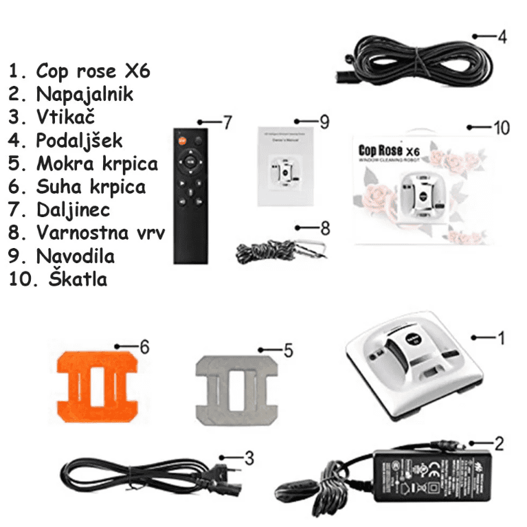 COP ROSE X6 je robot za čiščenje okenskih in drugih gladkih površin z vgrajeno lasersko tehnologijo. Sam zazna, kje je potrebno čiščenje in kje so ovire na poti, kot so recimo okenske kljuke.