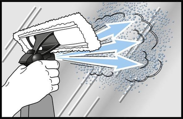 • Površina čiščenja z enim polnjenjem: približno 105 m² = 35 oken