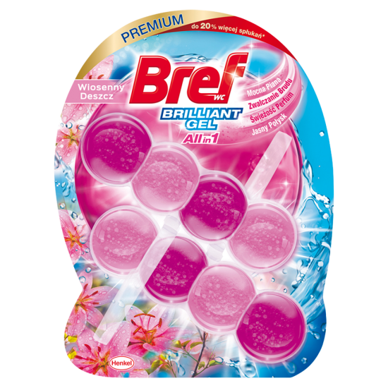 Bref Brilliant Gel Spring Rain – vaše stranišče bo bleščeče čisto in dišeče! Pozabite na trdovratno umazanijo in neprijetne vonjave. Naš gel za držalo za stranišče je inovativna rešitev 4 v 1, ki bo vaši kopalnici zagotovila neprimerljivo čistočo in svežino.