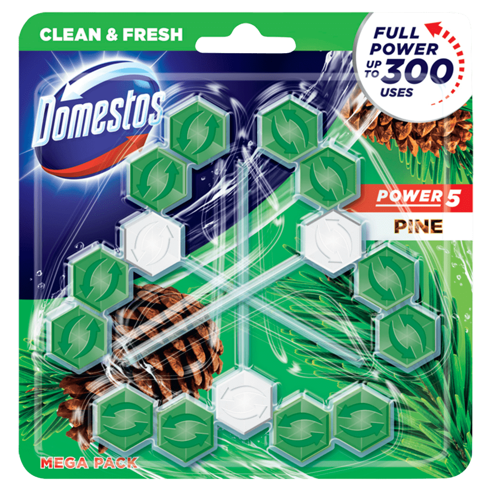 Domestos Power 5 blok za stranišče z vonjem borovega lesa 3 × 55 g Celoten opis
