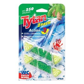 WC kocke Tytan Action 3 Forest so odlična izbira za tiste, ki iščejo učinkovit in uspešen način za vzdrževanje čistoče kopalnice. Priročne za uporabo, ekonomične in dolgotrajne – ta izdelek bo izpolnil pričakovanja tudi najzahtevnejših uporabnikov. Priložena košara omogoča enostavno odlaganje kock v stranišče, kar zagotavlja optimalno raztapljanje in enakomerno sproščanje dišave.