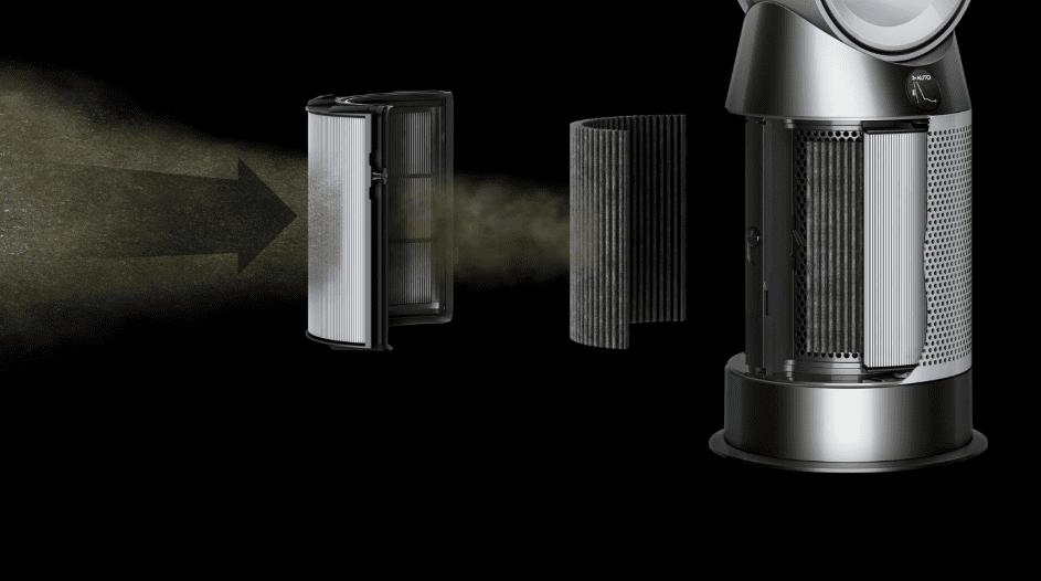 Popolnoma zaprti filtracijski sistem združuje HEPA filter in filter z aktivnim ogljem, ki odstranjuje pline. Prav tako pa odstranjuje cvetni prah v prostoru ter zmanjšuje količino plesni, ki se prenaša v zraku.