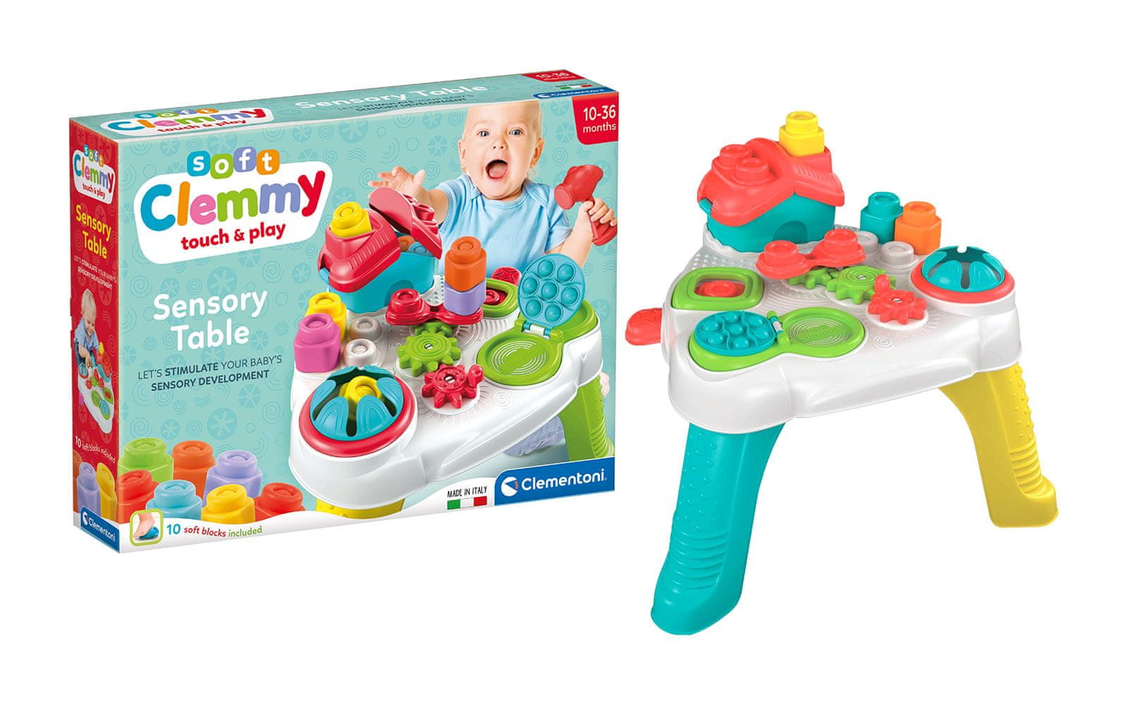 Mehke kocke Clemmy s senzorično mizo by Clementoni. Celoten opis