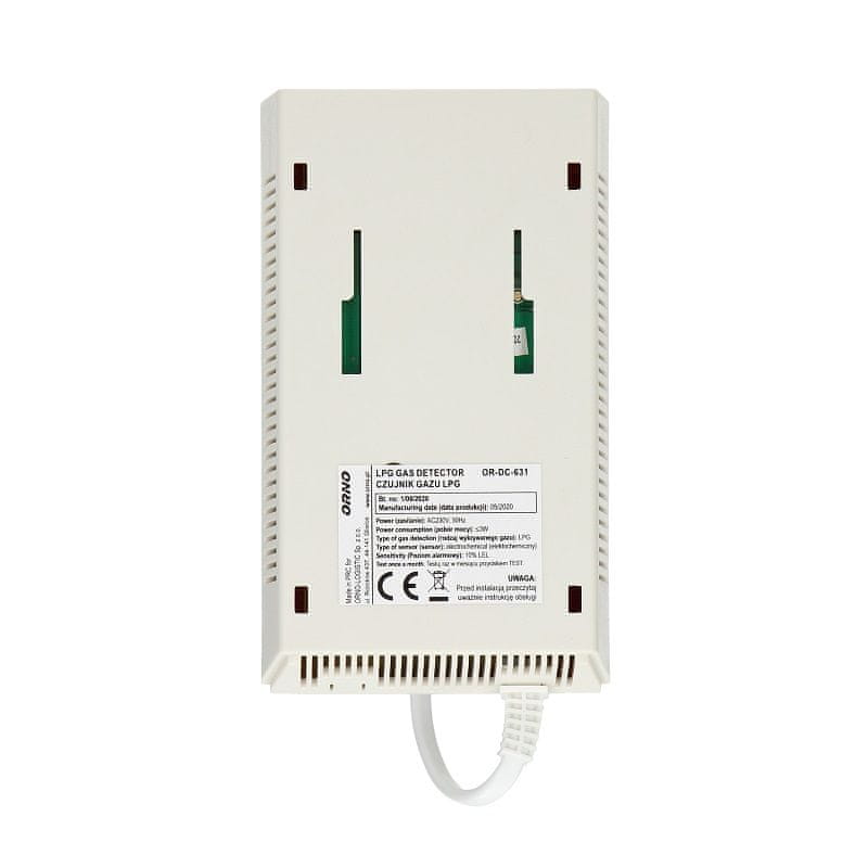 OR-DC-631-sensorn är en modern LPG-gasdetektor för inomhusbruk. Den används för kontinuerlig övervakning av närvaron och detektering av LPG som läcker ut från läckor. Enheten använder en högkvalitativ elektrokemisk sensor, vilket möjliggör en hög detekteringsfrekvens. När en gasläcka når den inställda larmgränsen avger sensorn ett hörbart och visuellt larm.