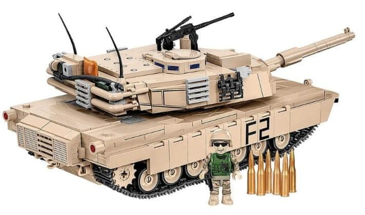 Edinstvena in realistična 982-delna maketa tanka M1A2 Abrams v merilu 1:35. Model ima samo visokokakovostne odtise, ki se med uporabo ne obrabijo. Vozilo ima delovne gosenice in odpirajoče se lopute za namestitev posadke. Kupola in cev vozila sta premična. Pod odstranljivo servisno loputo je motor, oblikovan iz opeke. Tank Abrams je obogaten z dodatki kot so: blok vreča, rezervne gosenice, strelivo in dve mitraljezi.