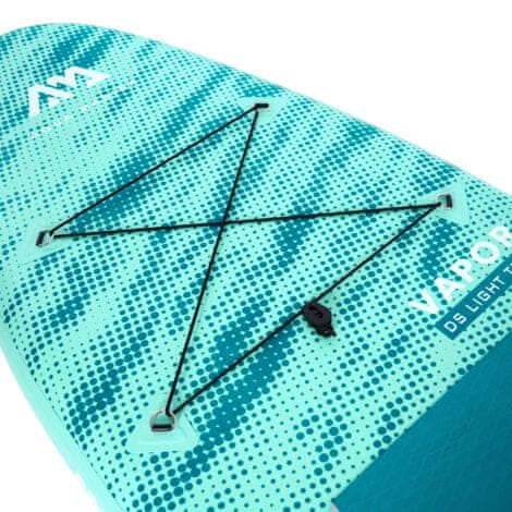 Vapor SUP je s svojimi 8,5 kg izjemno lahko vodljiv in okreten. Zaradi razmerja med dolžino in širino je tudi zelo stabilen ter dosega srednjo hitrost. Deska ima posodobljen dizajn, ki vas bo navdušil s svojim izgledom. V setu se nahaja tudi nahrbtnik z zadrgo za vse najnujnejše predmete. Supu pripadata en snemljiv sredinski smernik in 3-delno nastavljivo aluminijasto veslo z ojačano lopatko. Skozi D-obročke lahko z lahkoto napeljete elastiko, ki bo vaš tovor ali prtljago držala pri miru. EVA podloga na deski poskrbi, da vam ne bo zdrsnilo, neoprenski ročaj na sredini podloge pa omogoča lažje prenašanje.