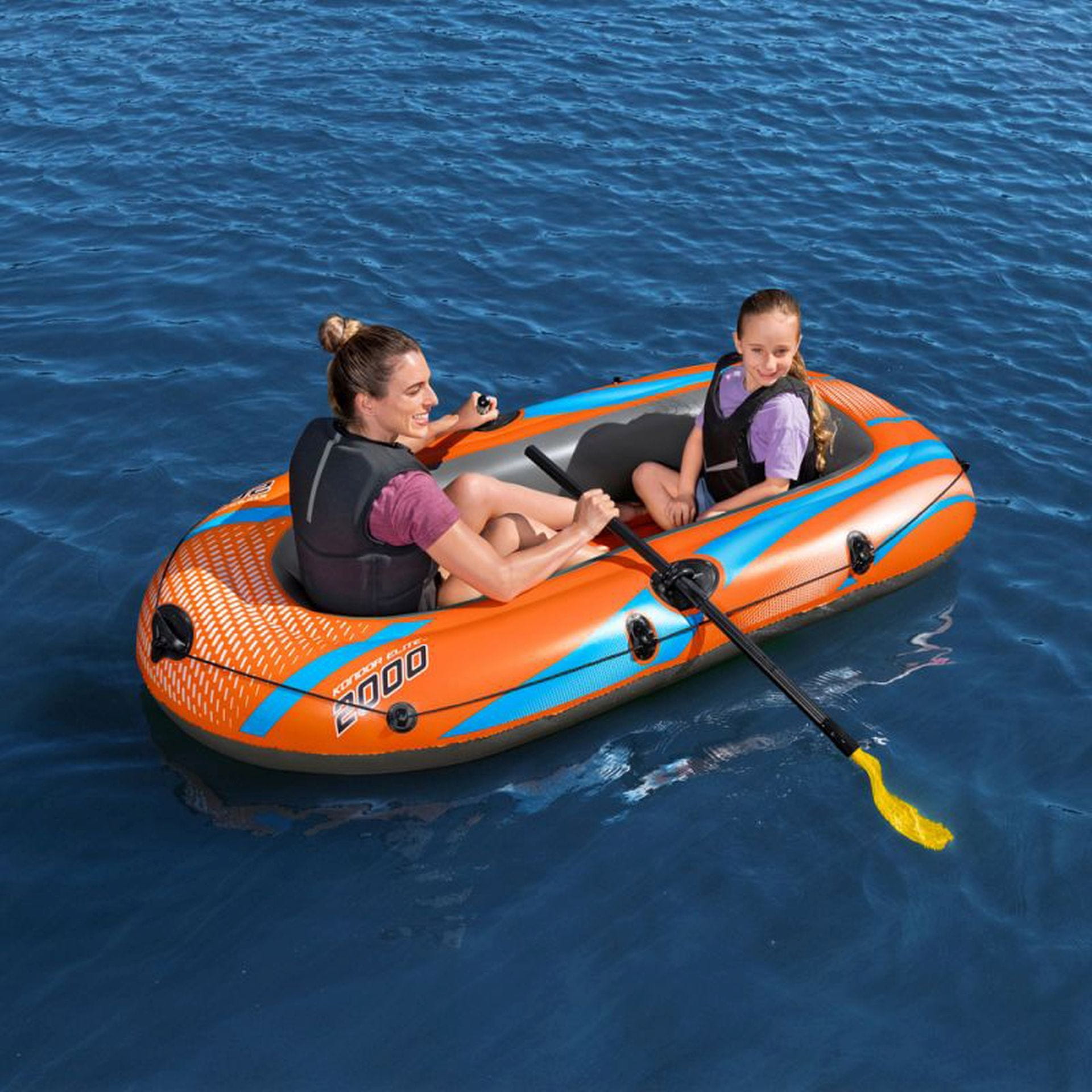Napihljiv dvosedežni splav Condor Elite 2000 je idealen za družinsko rekreacijo in je zasnovan za udobno uporabo z otroki. Ta model izpolnjuje nove varnostne standarde EU in je opremljen s številnimi funkcijami, ki zagotavljajo varnost in udobje na vodi.