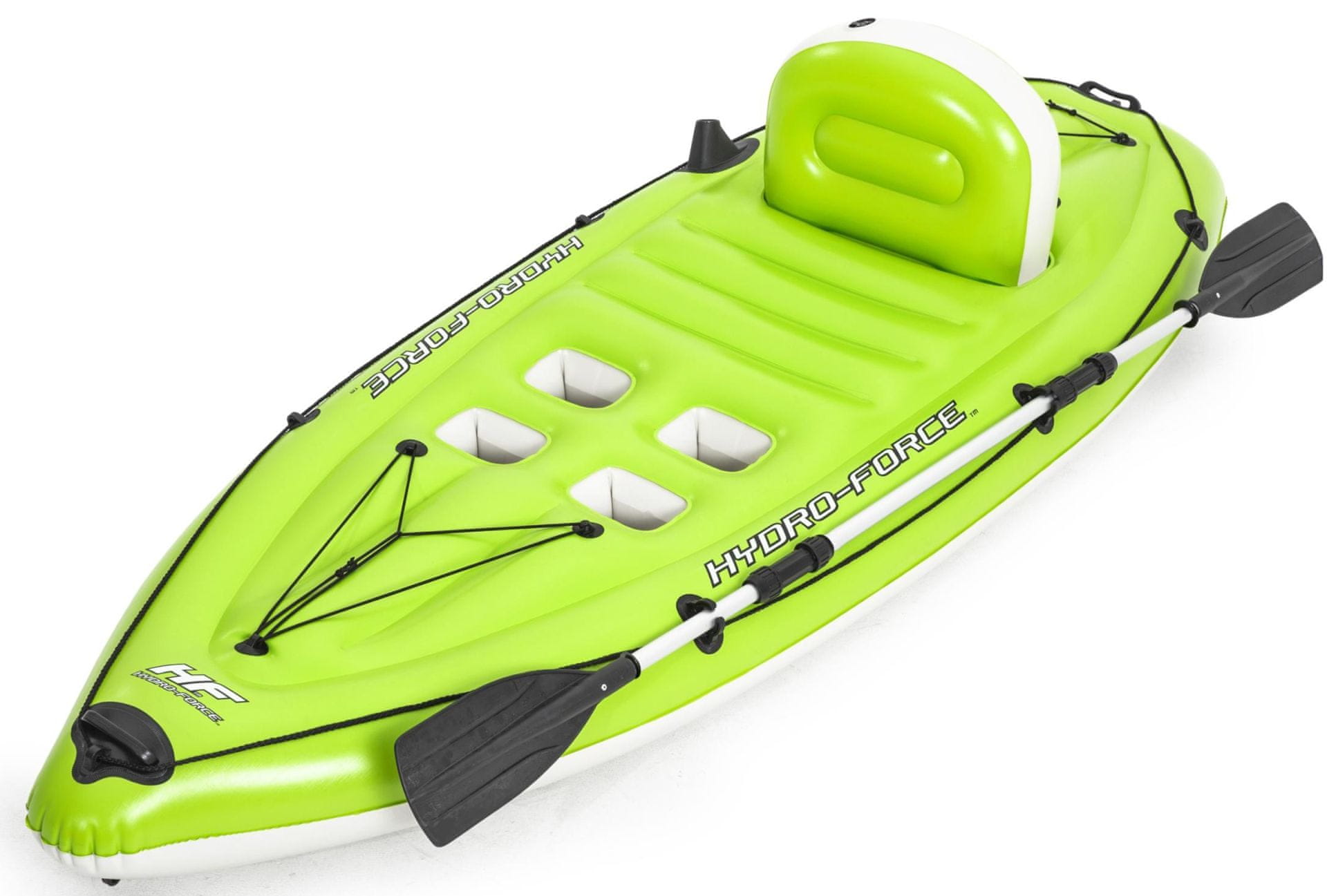Kajak Koracle je napihljiv, namenjen eni osebi z nosilnostjo do 150 kg, zato je odlična izbira za ribiče in ljubitelje vadbe na mirnih vodah in blagih valovih. Izdelan je iz kakovostnega materiala in ima številne funkcije, ki povečujejo njegovo vsestranskost in udobje.