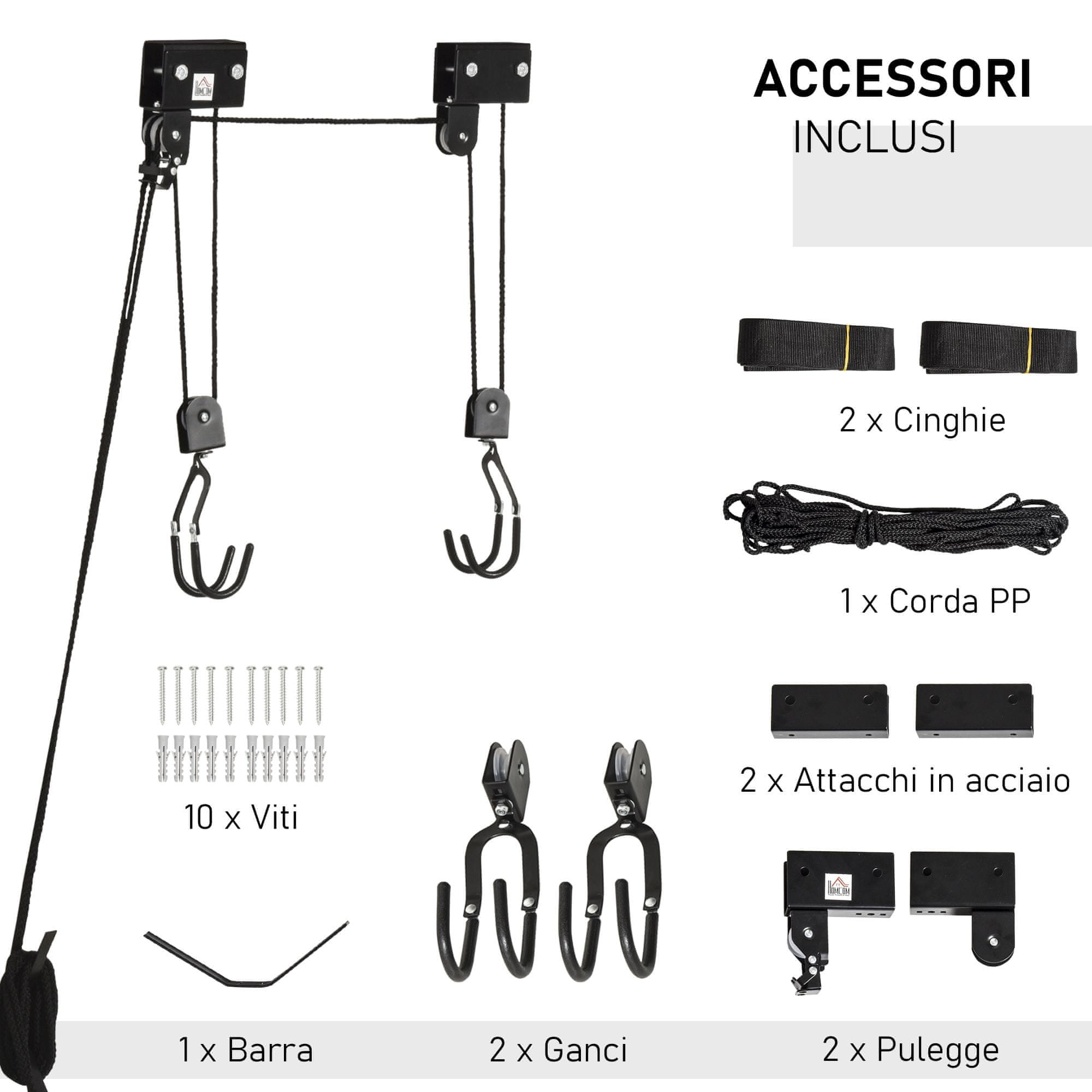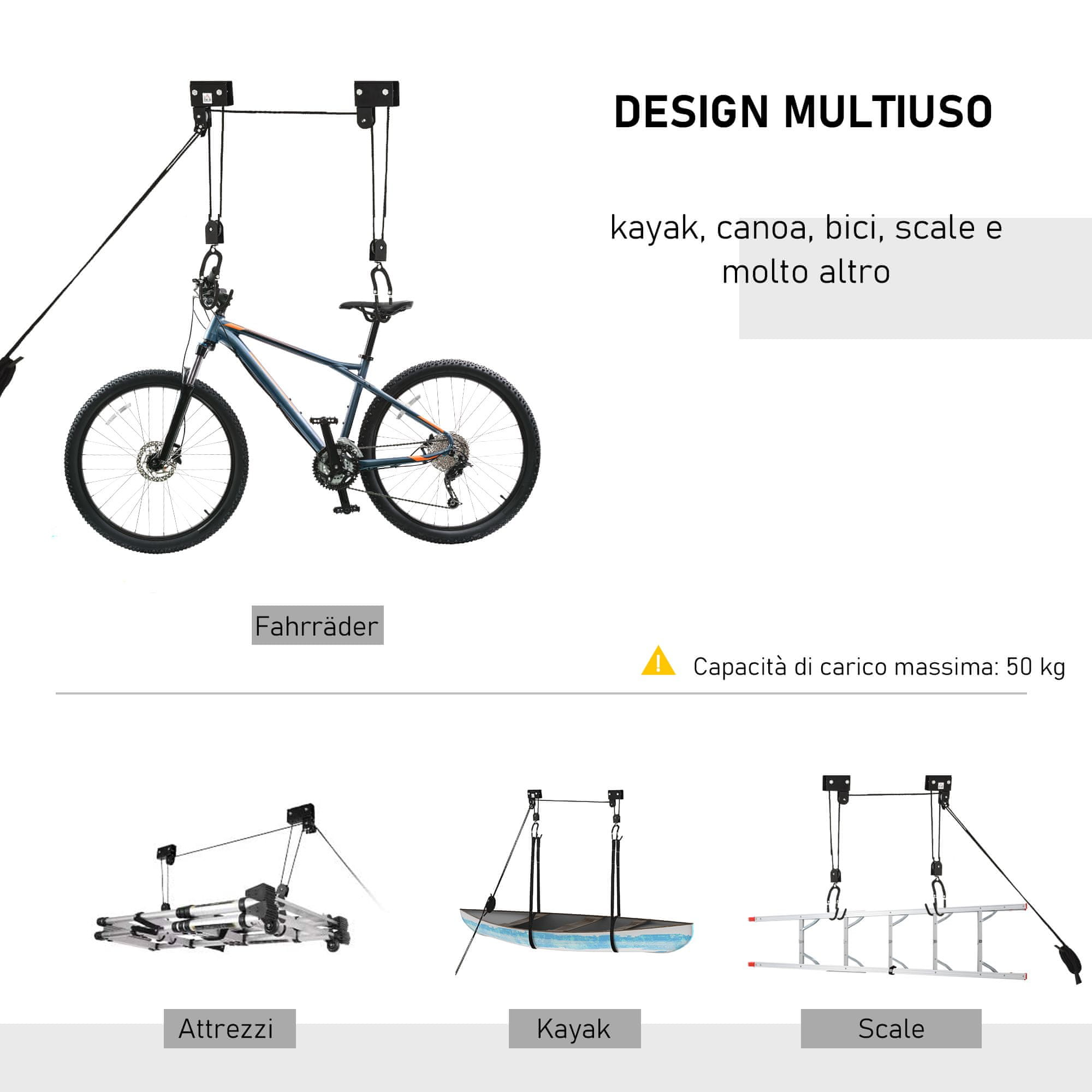 HOMCOM stropno dvigalo za kajak z jekleno jermenico in kavlji, max. 50kg črno