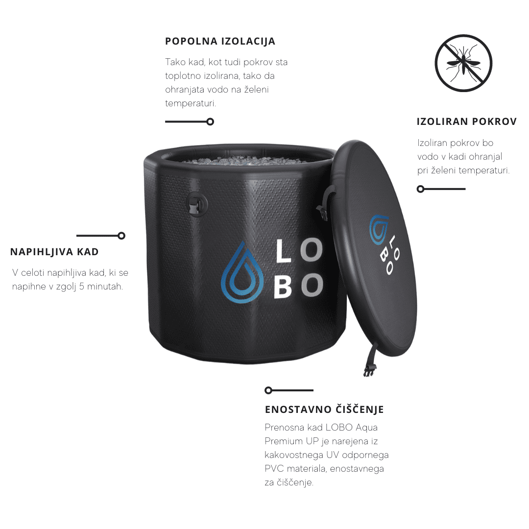 Zahvaljujoč posebej zasnovanemu pokrovu, se temperatura vode ohranja na optimalni ravni tudi med neuporabo. To pomeni, da bo pripravljena vedno, ko jo boste potrebovali. LOBO Aqua Premium je zanesljiva, vzdržljiva in prilagodljiva izbira za vse, ki cenijo moč terapije s hladno vodo in želijo doseči najboljše rezultate.
