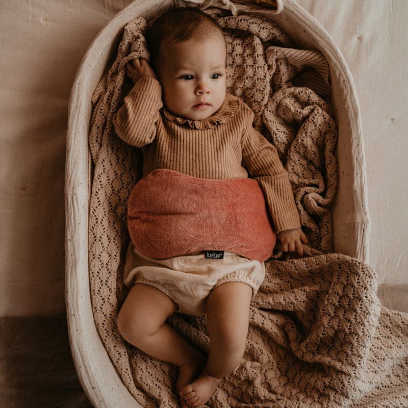 • posebej oblikovana oblika zagotavlja, da se blazina razprostira ob straneh dojenčkovega trebuha in tako ne obremenjuje ali pritiska preveč na dojenčka