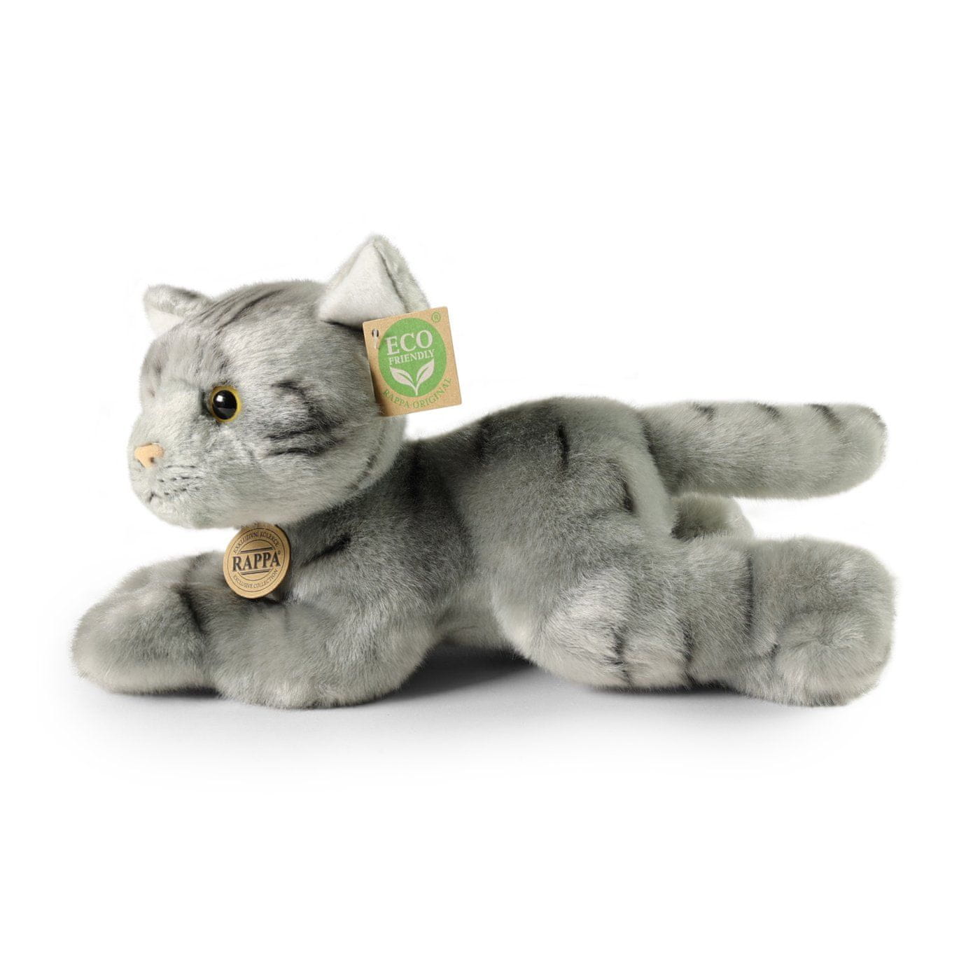 Krasna siva mačka ne sme manjkati v vaši zbirki plišastih živali! Prikupna 30 cm velika mačka je izdelana iz visokokakovostnega, prijetnega pliša, zato je videti kot živa in je del ekskluzivne zbirke plišastih igrač. Glavne značilnosti: realistične živalivisoka kakovost plišastega materialaekološko prijazno polnjenje Kaj pomeni EKOLOŠKO PRIJAZNO? Polnilo plišaste igrače je narejeno iz recikliranih plastenk PET. Ta material je popolnoma varen, na otip se ne razlikuje od standardnega polnila in je v celoti certificiran za varnost tudi najmlajših. Odločili smo se za zeleno pot, ki najmanj obremenjuje okolje – za EKOLOŠKO PRIJAZNO pot.