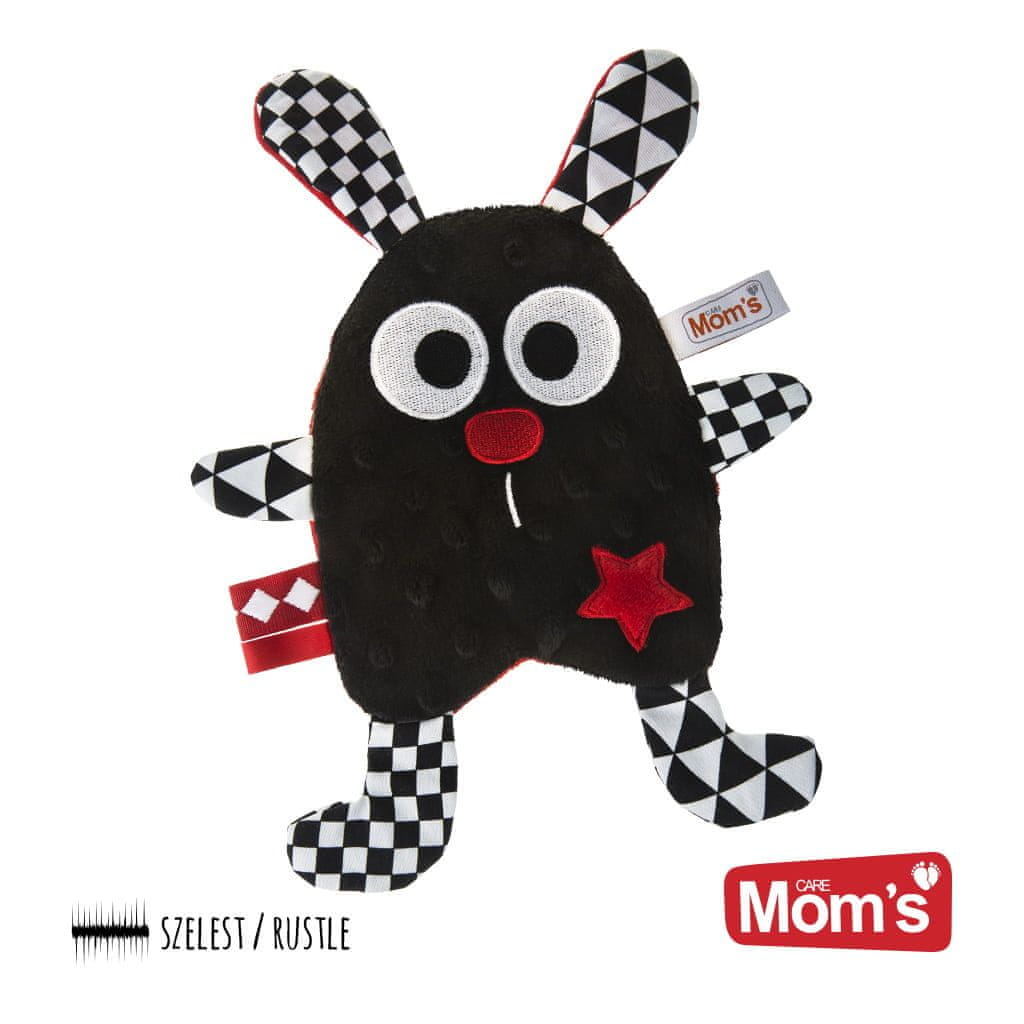 Kontrastna igrača – šelestenje. Minky je ena izmed najbolj priljubljenih tkanin med otroki. Material, prijeten na dotik in prekrit s številnimi izboklinami, zlahka pritegne otrokove roke. Igrača vsakič, ko se je dotakne, oddaja šelesteč zvok, ki na otroke vpliva na dva načina. Po eni strani vzbuja zanimanje, po drugi strani pa pomirja, saj asociira na čas, ko je bil vaš otrok v maminem trebuhu. Ta visokokontrastna igrača ima še eno prednost. Po mnenju psihologov prevladujoče barve pozitivno vplivajo na razvoj otrokovega vida. • Višina: 27 cm Podrobne informacije o izdelku: Starostna kategorija: 0m+ Sestava materiala: pliš (poliester), bombaž. Način vzdrževanja: ročno pranje na 30 stopinj, ne beliti, ne likati, ne sušiti v sušilnem stroju. Izdelano na Poljskem. Opozorila in navodila : Preden daste otroku, odstranite vse dele embalaže. Embalažo shranite za referenčne namene.