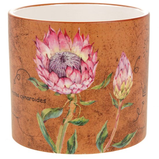 Keramični pokrov, rjave barve z okrasom cvetja, pomnoži lepoto živega cvetja in polepša notranjost. Celoten opis