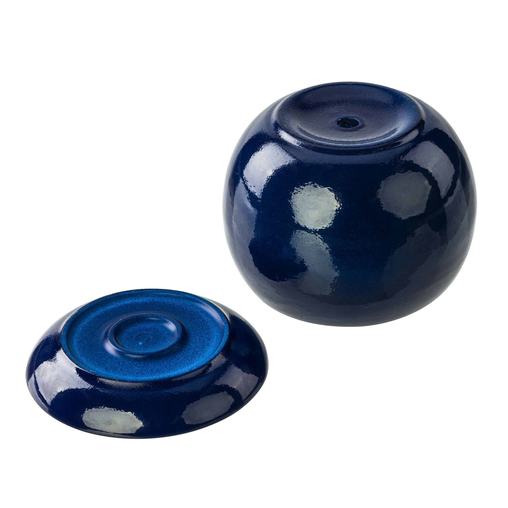 Cvetlični lonček Cvetlični lonec temno modra krogla skleda za rože s krožničkom okrogel ŠxV 110 mm x 100 mm površinski sijaj keramika modern glamur