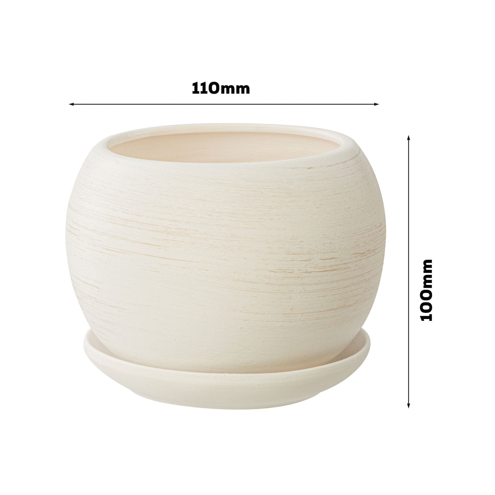 Cvetlični lonček Cvetlični lonec lahka betonska krogla skleda za rože s krožničkom okrogel ŠxV 110 mm x 100 mm površina mat keramika moderen glamur