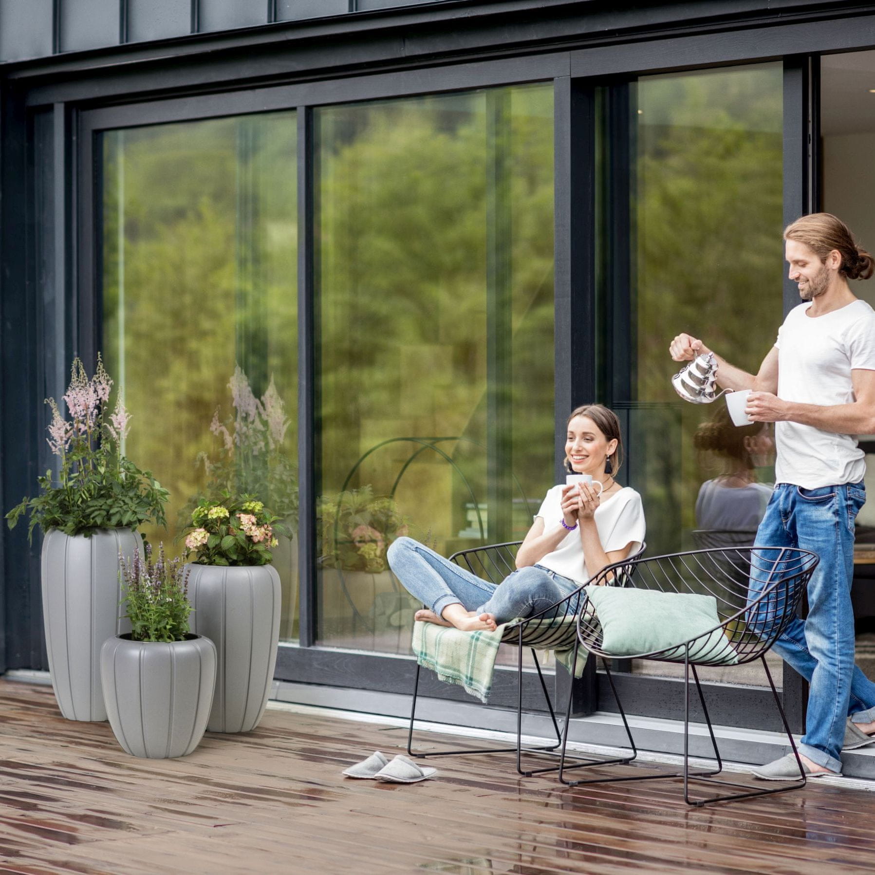 Za vsak lonec je vložek s posebnim ročajem, ki močno olajša presajanje rož ali spreminjanje aranžmaja.