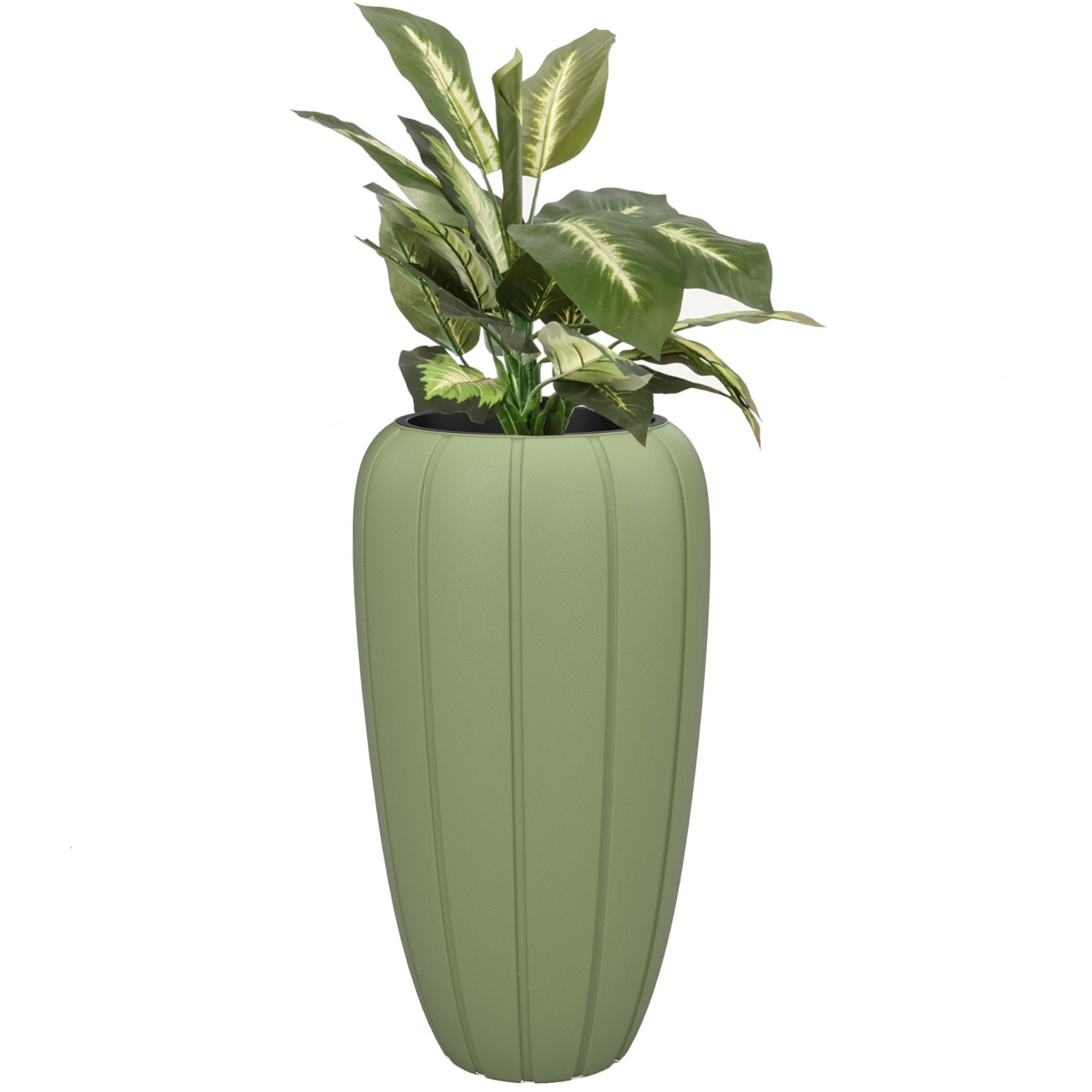 Cvetlični lonec Cvetlični lonec z vložkom Barva Zelena Okrogla 40 cm V 75 cm Žlebljena površina Mat plastika Moderni Glamour