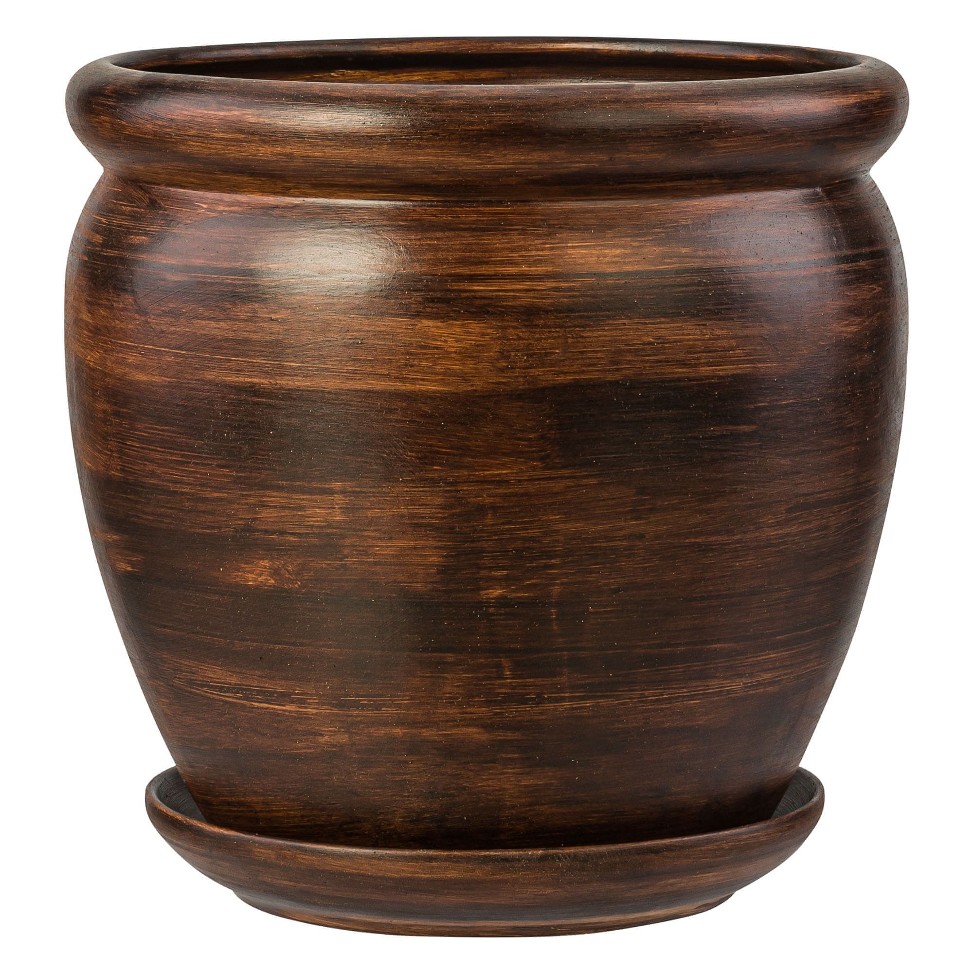 Cvetlični lonec Temno drevo Cvetlični lonec s krožnikom okrogel DxV 280 mm x 305 mm površina mat keramika moderen glamur