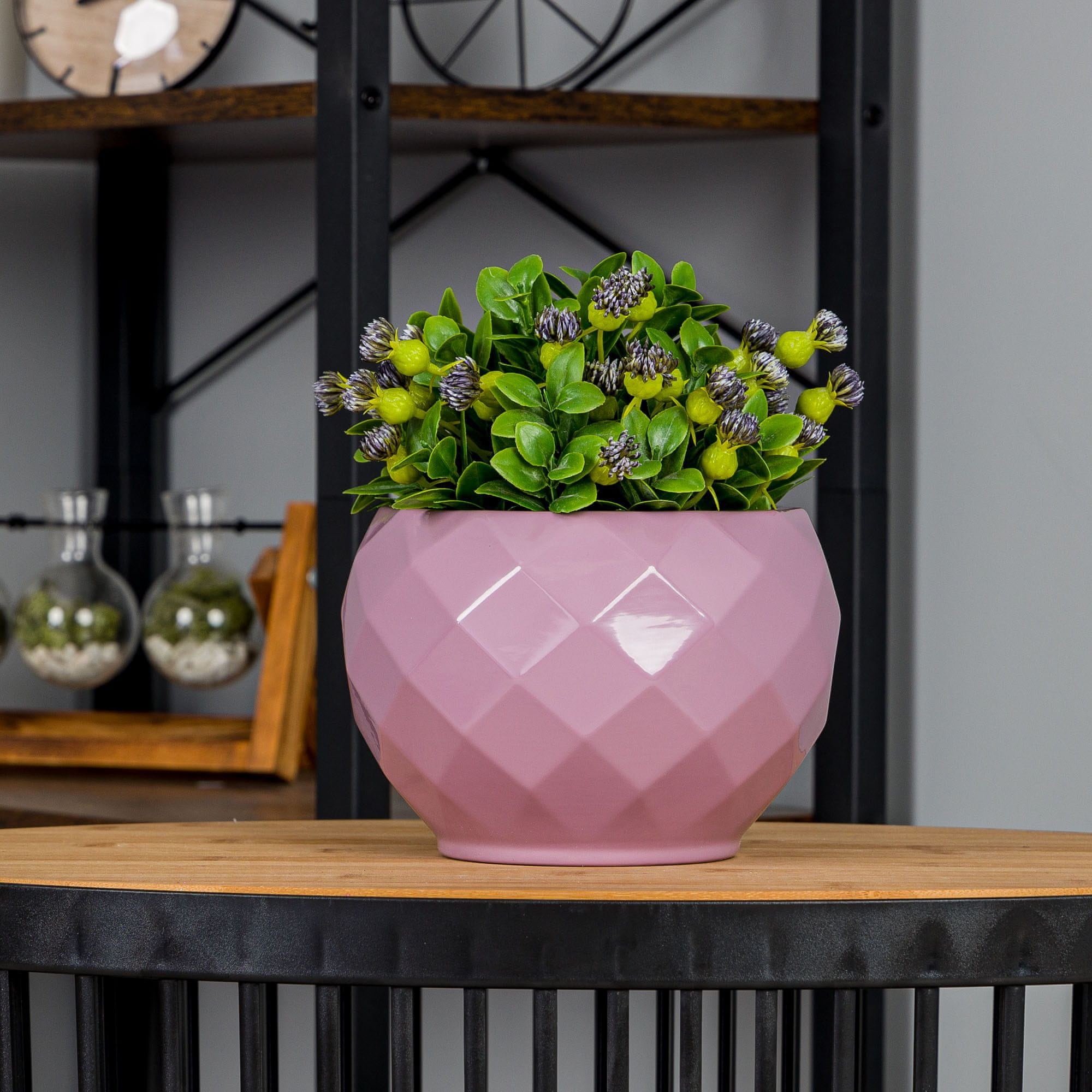 botle Keramični cvetlični lonec roza 15,5 cm H14,5 cm sijajni