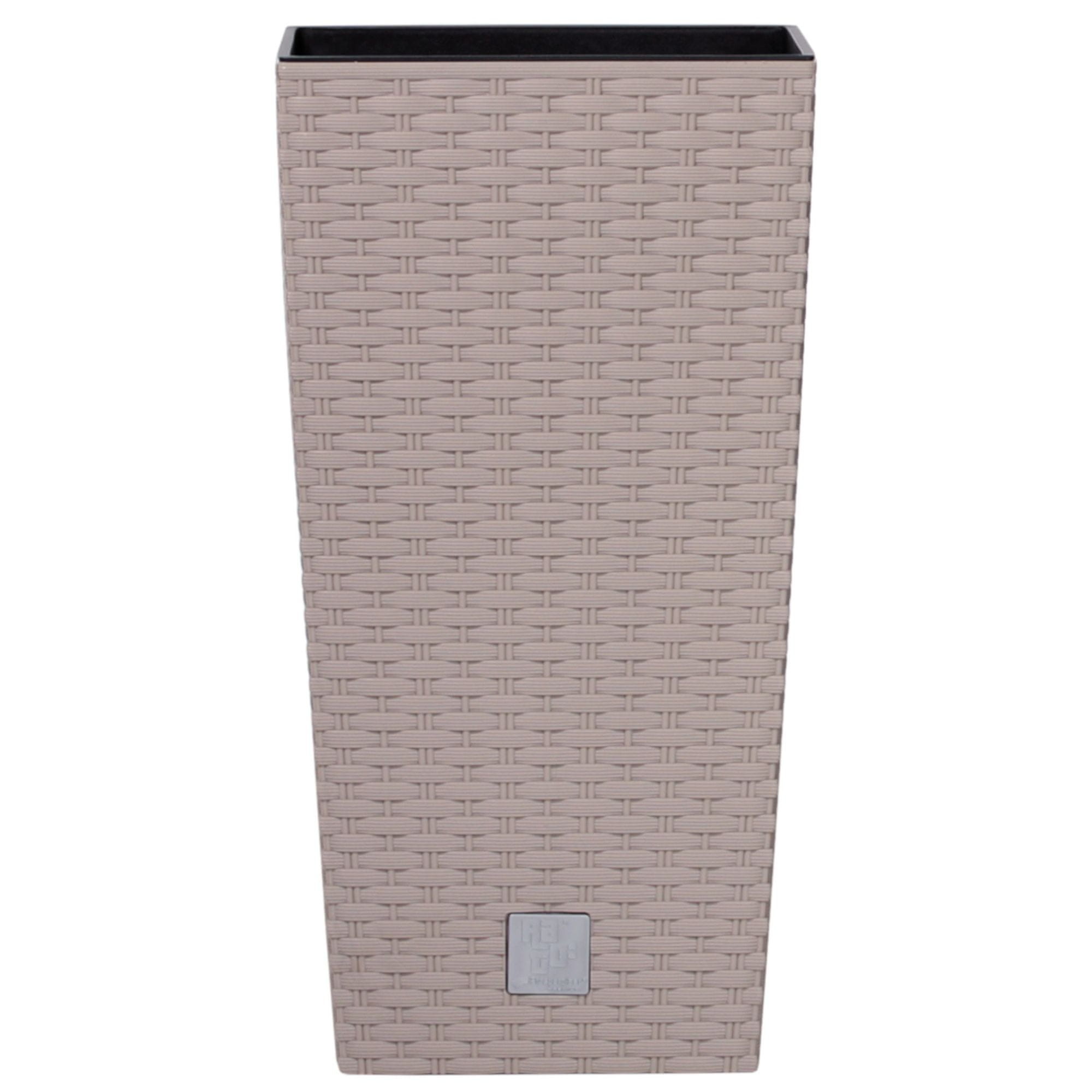 botle Komplet 2 cvetličnih loncev 91,5 L ratan videz mokka visoki sadilniki V 75 cm z notranjo škatlo 37 L kvadratni plastični sadilnik