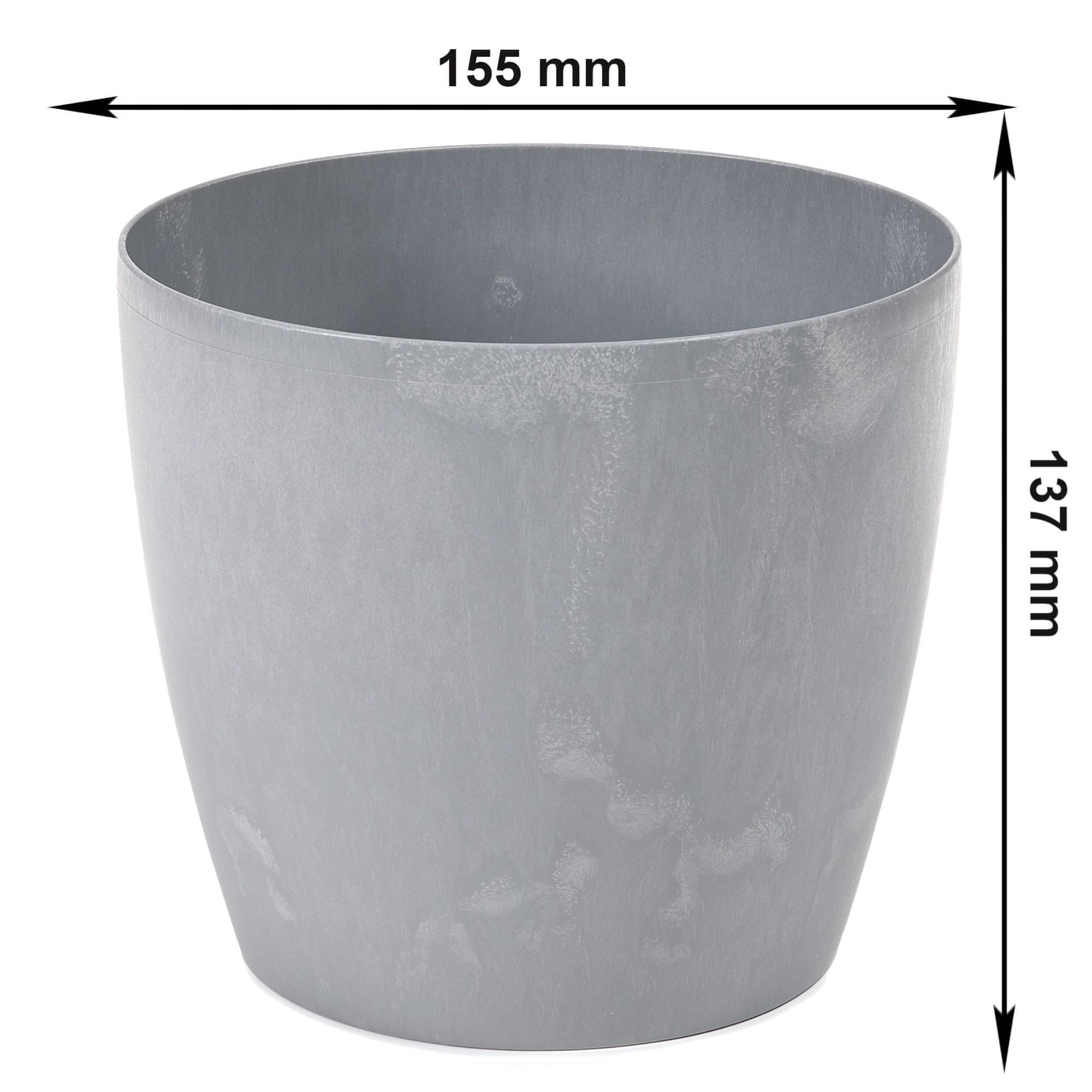 Narejen je iz visokokakovostne plastike in odlično posnema betonske lončke. Hkrati je lahek, eleganten in odporen proti razbitju. Za cvetlični lonec je značilna visoka odpornost na vremenske vplive (vlaga, UV žarki), kar omogoča, da na vrtu, balkonu ali terasi dobite edinstven aranžma.