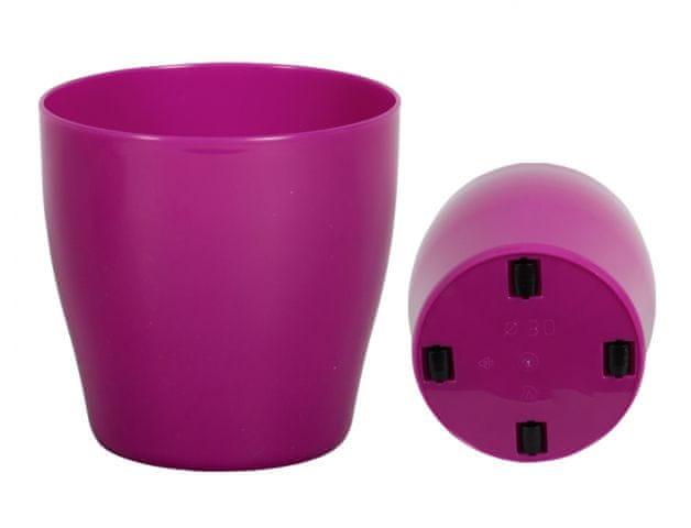 Sijajni pokrov za cvetlične lončke iz visokokakovostne plastike ima 4 kolesa. Barva: vijolično-rožnata. Dimenzije: d 35 × 35 cm.
