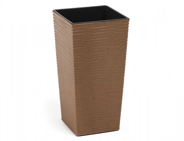 Visok plastični pokrov za sadike z notranjo oblogo je edinstvenega videza, ki spominja na pletenino. Primeren je za notranjo in zunanjo uporabo ter je odporen na UV-žarke. Embalaža je izdelana iz reciklirane plastike, ki vsebuje do 40 % lesnih sekancev. Barva: svetlo rjava. Širina: 25 cm, višina: 46 cm, globina: 25 cm.