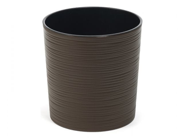Plastična prevleka za cvetlične lončke z izvirnim videzom pletenice. Vključuje notranjo podlogo. Barve so odporne na UV žarke. Barva: temno rjava. Premer: 30 cm, višina: 31 cm.