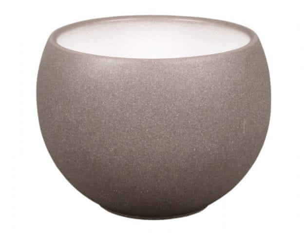 Mat keramični okrogli pokrov za cvetlične lončke z grobo peskano površino, primeren za uporabo v zaprtih prostorih. Barva: rjava. Premer: 17 cm, višina: 13 cm. Celoten opis