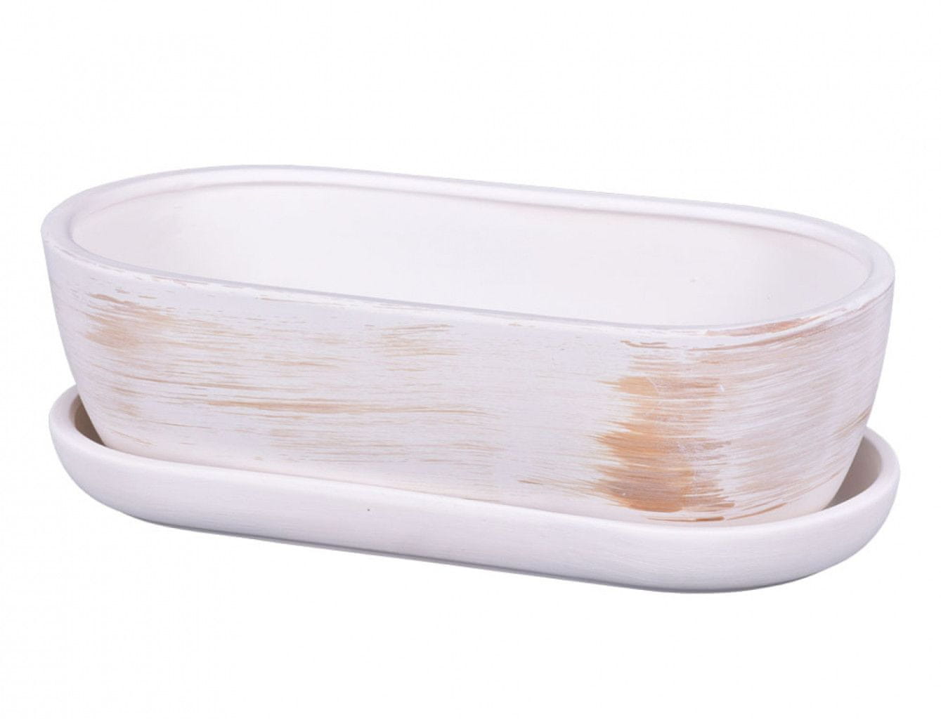Mat keramična škatla s krožnikom. Izdelan je iz posebne bele gline z visoko vsebnostjo kaolina. Barva: bela. Širina: 34 cm, višina: 11 cm.