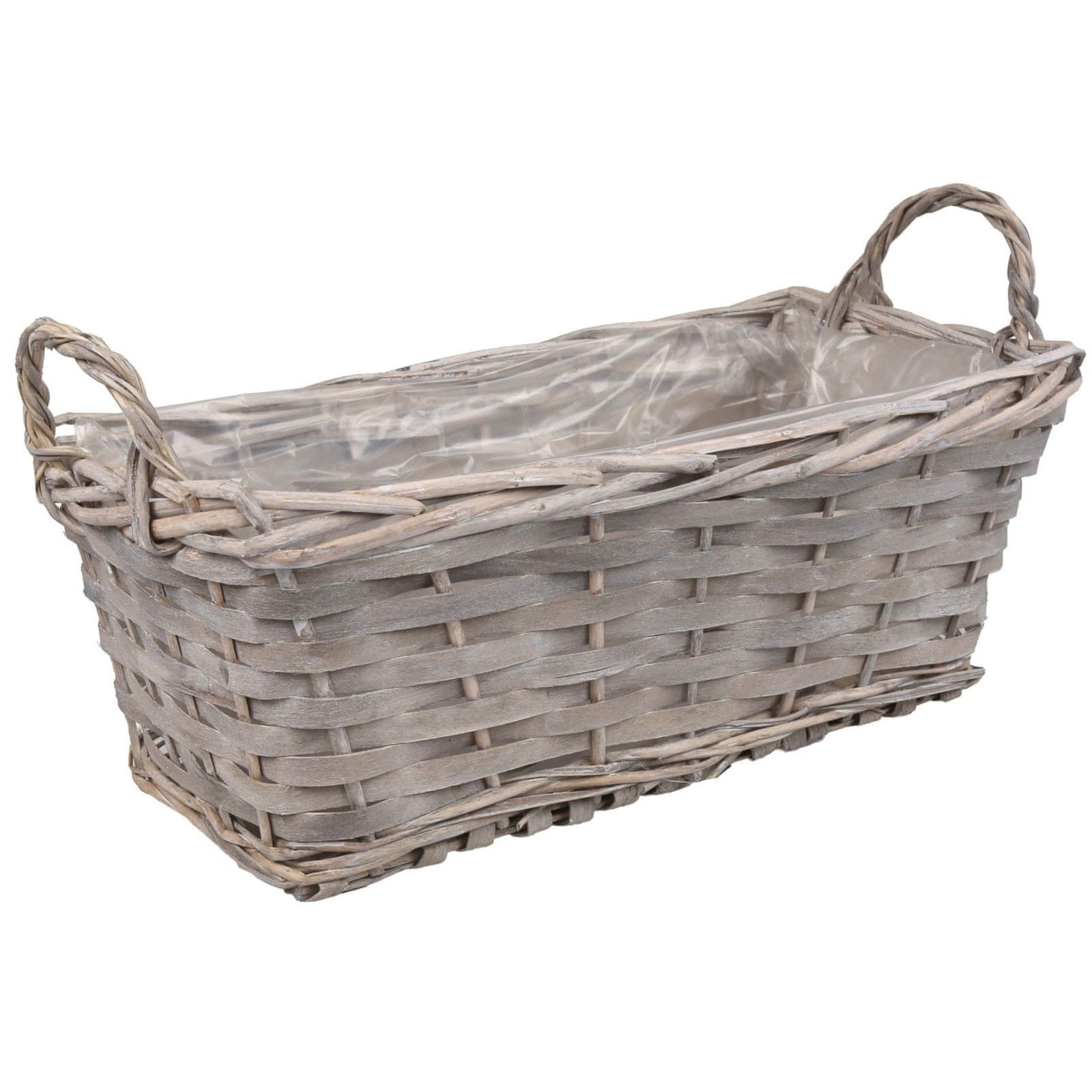 GARDEN LINE Majhen pleten lonec s folijo, košarast lonec z ročaji, cvetlični korit 32x16x12 cm