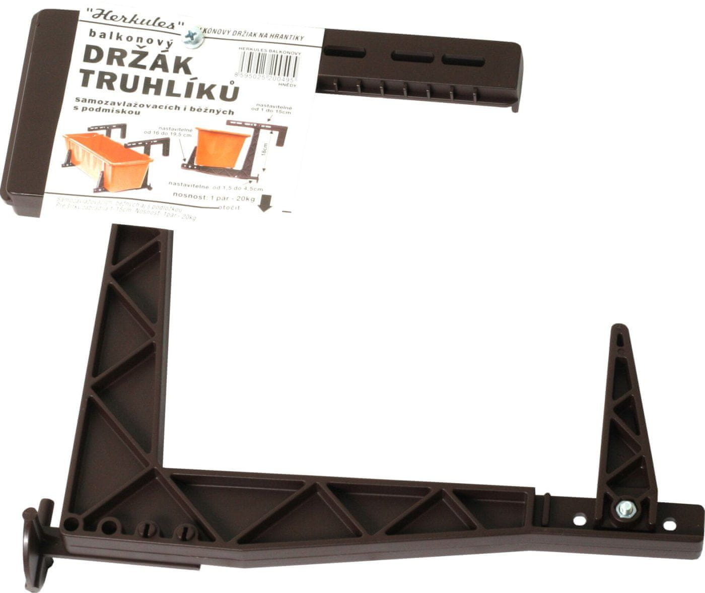 držalo za škatle HERKULES balkon.18×17cm HN nastavljiva velikost = višina x širina škatle nosilnost 20 kg na par za širino ograje 2 – 15 cm Celoten opis